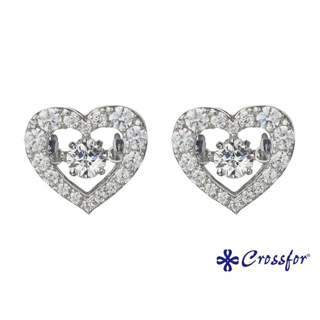 キラキラと煌めくダンシングストーンと大きさの違うメレで作られたハートは、やさしくときめく乙女心をイメージしたデザイン。 ネックレス☆NYP-540とセットでご使用いただけます。 【ダンシングストーン】とは ジュエリー本体は動かず、その中にある石だけが踊る(Dance)ように振動するのが特徴。 『動き出したら止まらない』と言えるほど常に動き続けるセッティング方法です。特許取得済み。 世界のビジネスとファッションをリードする高感度都市 New York をイメージしたブランド。 リッチに見えるデザインなのに、日常で身につけやすい、ご自身へのご褒美や、プレゼントとしておすすめです。 【クロスフォーカット】とは、 3年の歳月をかけ研究開発を繰り返し、光のリフレクション効果で宝石の中に十字の輝きをもたせることに成功したものです。 それは宝石に彫刻的な方法で傷つけるのではなく、独自に開発したカットスタイルにより十字の輝きが現れたものです。 「クロスフォーカット」は、アメリカをはじめ、世界16ヶ国で特許を取得しています。 パッケージ:クロスフォー専用ケース・スコープ・バッグ・カード付き お揃いのネックレス☆NYP-540 メーカー希望小売価格:11,000円 ■素 材 :シルバー925(ロジウムコーティング) クロスフォーカットキュービックジルコニア キャッチ:淡水パール・シリコンパーツ ■商品サイズ:本体:約8.5mm×約10.0mm 重量:約1.52g ■キャッチ :重量:約1.43g(ペア) ■ストーン :中石:クロスフォーカットキュービックジルコニアCFCZ 3.0mm×2pcs 脇石:キュービックジルコニアCZ 1.0mm x 12pcs、1.3mm x 8pcs、1.5mm x 4pcs、1.9mm x 8pcs