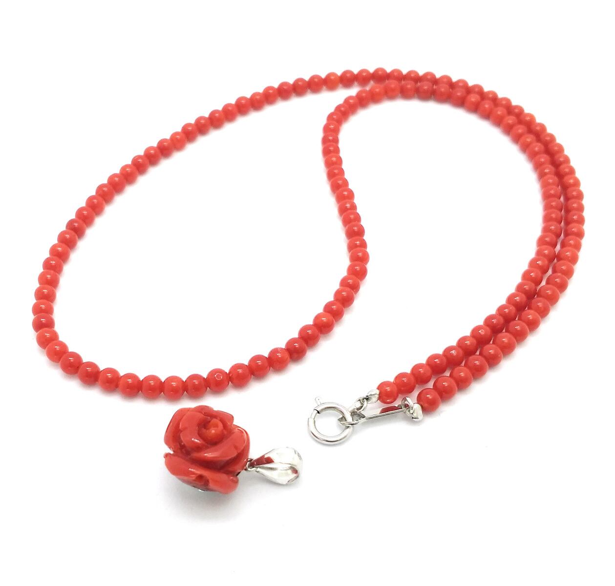 珊瑚を花びらに加工して、薔薇の形に仕上げたお花のペンダントネックレス。