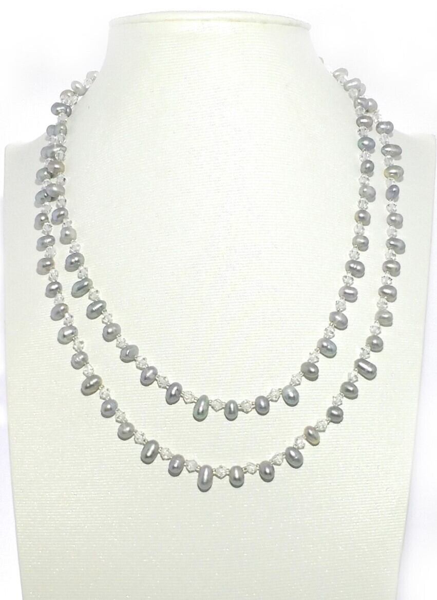 エッグ型の淡水パールとビーズを組み合わせたロングネックレスです。