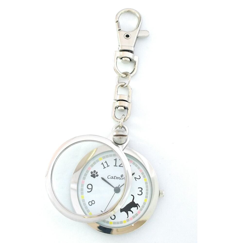 ルーペ付き キーホルダーウォッチ キーチェーンウォッチ クロネコ 黒猫 N04520A-C