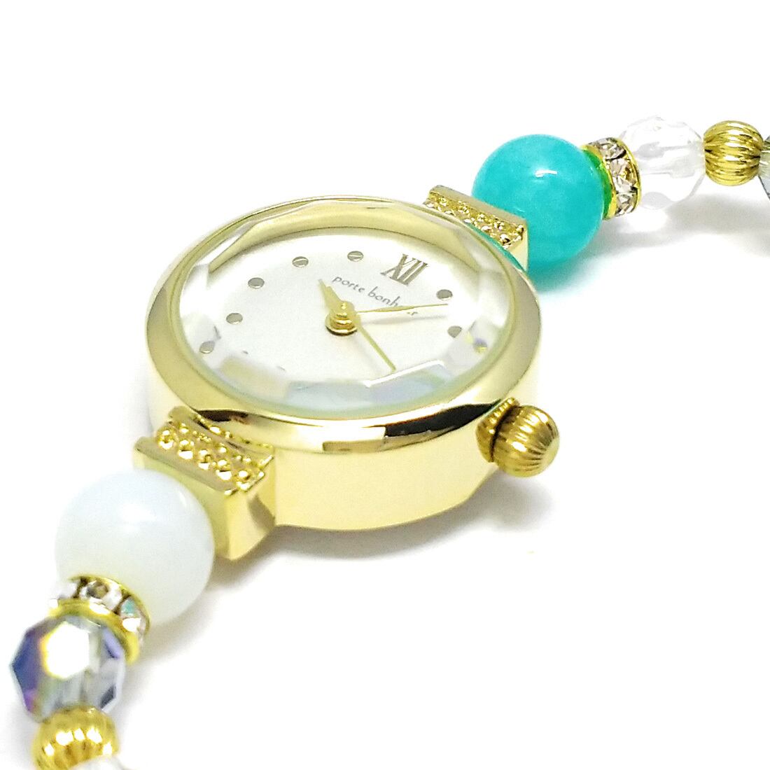 バングル部分に、天然石を使用したブレスレットタイプの時計です。